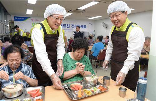 NH농협금융 김용환 회장 등, 복지관서 배식 봉사