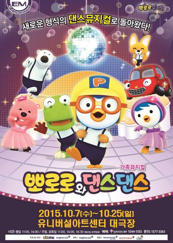 유진그룹 공연기획계열사 EM미디어는 뮤지컬 '뽀로로' 시리즈의 신작 '뽀로로와 댄스댄스'의 티켓 판매를 시작한다고 12일 밝혔다.