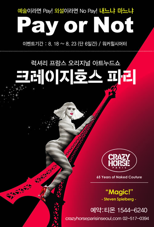 <크레이지호스 파리>를 유치한 더블유앤펀엔터테인먼트 측은 한국 관객들에게 파격적인 제안< ‘Pay or Not'>을 내걸었다.