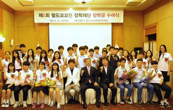팔도꼬꼬면장학재단은 25일 전라북도 전주에 위치한 '르윈 호텔 기린홀'에서 '제5회 팔도꼬꼬면장학재단' 장학금 수여식을 가졌다.이 날 수여식에는 팔도꼬꼬면장학재단 최재문 이사장과 권성균 사무국장 등 팔도 관계자와 이경규(개그맨) 장학재단 이사 등이 참석했으며, 장학금 수혜학생을 포함해 모두 40여명이 참석했다.최재문 이사장과 이경규 이사는 선발된 전라북도에 재학 중인 총 97명의 고등학생 중 대표로 참석한 30명의 학생들에게 장학증서와 장학금을 전달했다. 이번에 선정된 장학생에게는 2학기 수업료 전액을 지원했으며, 총 7000만원의 장학금이 지급됐다.지난 2012년 팔도와 개그맨 이경규가 함께 설립한 팔도꼬꼬면장학재단은 '꼬꼬면', '남자라면' 등 팔도 라면의 수익 일부를 기부하여 장학금으로 사회에 환원하고 있다. 그동안 5회에 걸쳐 총 310명의 학생들에게 2억 9000만원의 장학금을 전달했다.팔도꼬꼬면장학재단 최재문 이사장은 학생들에게 "어려움을 극복하고 꿈을 향해 정진해 나간다면 원하는 꿈을 반드시 이룰 수 있을 것"이라고 학생들을 격려했으며 "팔도꼬꼬면장학재단도 많은 학생의 꿈을 이뤄줄 수 있는 건실한 장학재단으로 성장해 나가겠다"고 밝혔다.