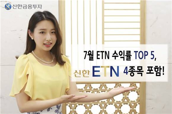 두 번째로 수익률이 높은 종목도 신한금융투자가 4월 15일에 상장한 '신한 인버스 WTI원유 선물 ETN(H)'으로 35.51%이다. 신한금융투자는 7월에 ETN 수익률 TOP5 중에 4개 종목이 포함되기도 했다.