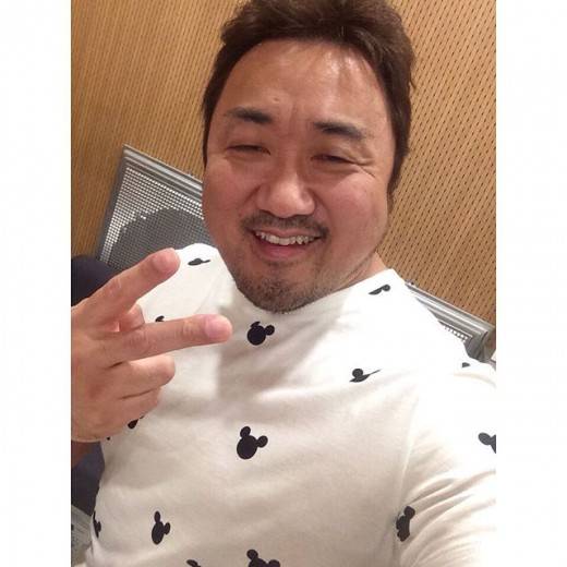공개된 사진 속 마동석은 훈훈한 미소를 짓고 카메라를 향해 브이자를 그려보였다.