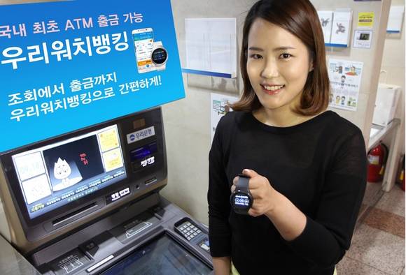 스마트워치를 이용하면 카드나 통장없이 우리은행 영업점에 방문해도 ATM기를 편리하게 사용할 수 있게 됐다.우리은행이 소비자들의 금융서비스 이용 패턴을 바꿀 수 있는 새로운 서비스를 선보였다. 금융권 최초로 스마트워치를 이용해 계좌조회부터 ATM 현금출금이 가능한 '우리워치뱅킹'을 18일 공개한 것.