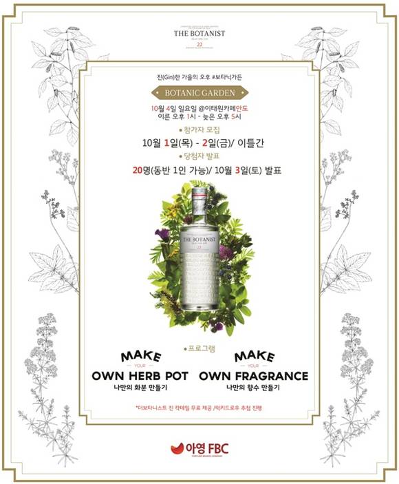 종합주류기업 아영FBC는 '더 보타니스트 진'을 시음할 수 있는 '보타닉가든' 이벤트를 진행한다고 1일 밝혔다.