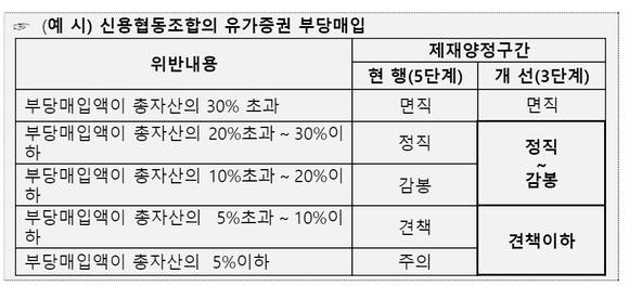 현재 4~5단계로 세분화된 제재양정구간을 3단계로 통합 조정하고, 위반동기 및 과정, 사후 시정노력 등 비계량적 요소를 종합적으로 고려해 합리적인 제재수준을 결정한다는 방침이다.