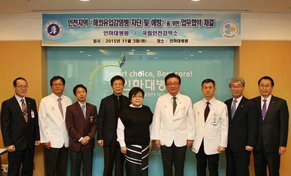 인하대병원(병원장 김영모)은 국립인천검역소와 ‘인천지역 해외유입 감염병 차단 및 예방’을 위한 업무협약을 체결했다고 9일 밝혔다.이날 두 기관은 해외 감염병의 국내 유입 및 확산 방지, 감염병 환자 혹은 의심환자에 대한 이송·관리 체계 구축, 관련 의료정보 교류 등 인천시민의 건강보호와 안전에 이바지하기 위한 다각적인 협력 활동을 수행하기로 합의했다.특히 이번 협약을 통해, 양 기관의 핫라인 구축을 통한 감염병 관리 창구의 일원화로, 환자 발생 시 신속한 이송 및 진료 체계 구축을 비롯한 체계적인 환자관리 시스템 창출이 기대된다.김영모 병원장은 "인하대병원은 지역사회를 대표하는 대학병원으로서, 늘 인천시민의 건강을 주안점으로 두고 책임져야 할 의무를 보유하고 있다."라며 "이번 협약을 통해 인천지역에서 해외유입 감염병의 최초 방어선을 구축해 시민들의 안전에 이바지할 수 있도록 최선을 다하겠다.”고 말했다.