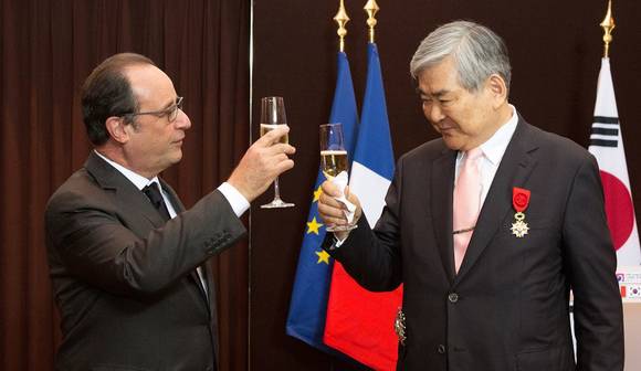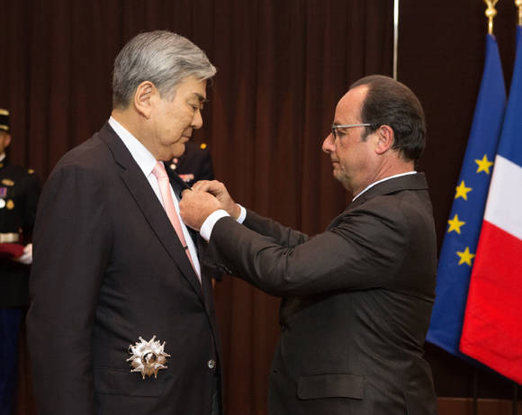 프랑수아 올랑드 대통령, 국민들 대신해 '특별한 선물' 들고 방한최고 권위 훈장 '레지옹 도뇌르 그랑도피시에' 父子 수상 영광 안아16년 동안 '한-불 최고경영자클럽' 위원장 맡으며 양국 관계 개선 공로 인정 받아