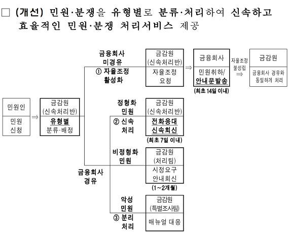 금감원 역시 민원·분쟁 처리 업무가 과부화되면서 기존의 프로세스를 개선키로 했다. 먼저 민원과 분쟁을 유형별로 분류하고 신속하고 효율적으로 처리할 계획이다. -