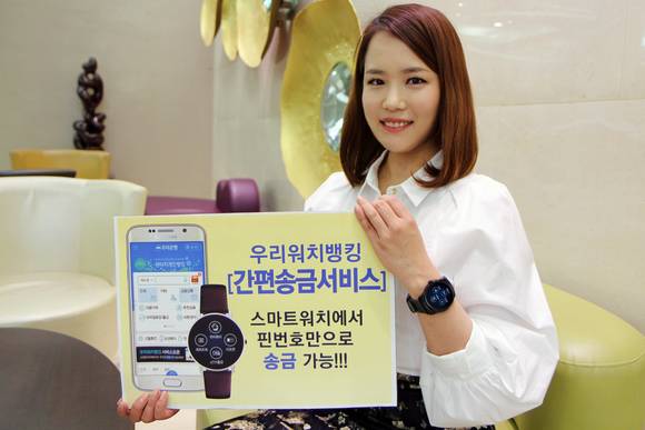 우리은행이 국내 최초로 스마트워치를 이용해 현금을 보낼 수 있는 '우리워치뱅킹 간편송금서비스'를 시작한다고 19일 밝혔다.