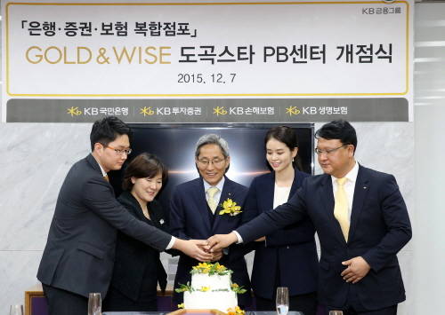 KB국민은행(은행장 윤종규)은 지난 7일 서울 강남구 도곡동에 위치한 SEI 타워 10층에 은행∙증권∙보험의 원스톱(One-Stop) 자산관리 서비스를 제공하는 대형 PB센터인 도곡스타PB센터를 오픈했다.8일 국민은행에 따르면 도곡스타PB센터는 일반 PB센터보다 확대된 인원과 인프라를 기반으로 고품격 VVIP 자산관리 서비스를 제공한다. 고객별 맞춤형 금융상품, 차별화된 라이프 케어 서비스, 세무 및 부동산 등 분야별 전문가가 상주해 수준 높은 자문 서비스를 제공하고 고객의 다양한 니즈를 충족할 예정이다.