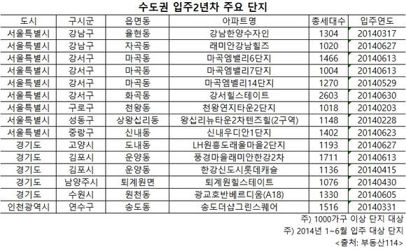 12일 부동산114에 따르면 2014년 1월부터 6월까지 입주가 이뤄진 수도권 단지는 15개, 총 2만197가구다.