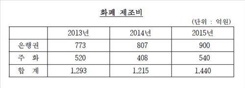 연간 화폐제조비용은 5만원권이나 새 1만원권 발행 등 신권 교체 수요가 있을 때를 제외하면 전반적으로 감소하는 추세였지만 지난해엔 2013년에 비해 증가세로 돌아섰다.