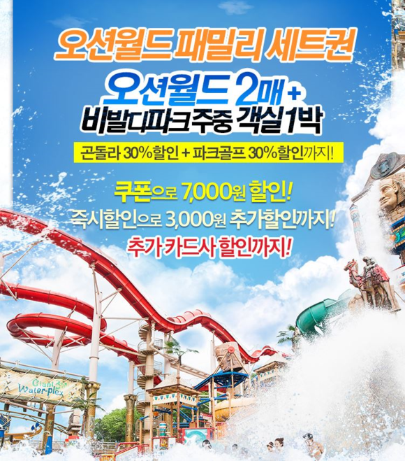 위메프, 오션월드 입장권+ 비발디파크 객실 패키지 9만원 특가 판매