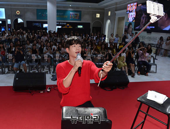 네스카페 크레마 모델 서강준이 19일 오후 롯데월드타워에서 진행된 '넷카페 크레마 데이트' 행사에 참석해 참석한 팬들과 셀카를 찍고 있다.