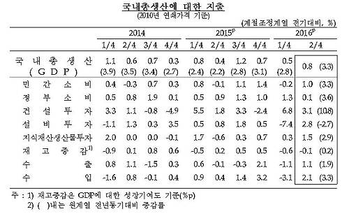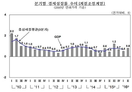 작년 3분기에 1.2%로 반등했던 것을 제외하면 2014년 2분기(0.6%)부터 8분기 동안 성장률이 0%대의 부진에서 헤어나지 못하고 있다.