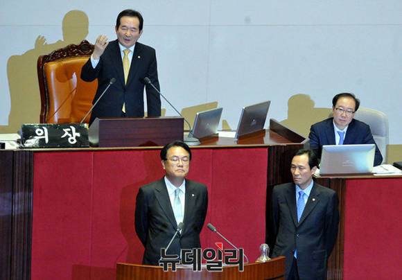 - ▲ 새누리당 이정현 대표는 정세균 의장이 사퇴를 요구하며 무기한 단식 농성에 돌입했다.ⓒ 뉴데일리
