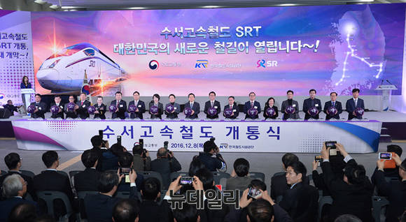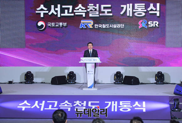 황교안 국무총리가 8일 오후 서울 강남구 수서역에서 열린 수서고속철도 개통식에서 축사를 하고 있다. 수서발 고속철도(SRT)는 오는 9일부터 본격적인 운행에 돌입한다. 요금은 KTX 대비 평균 10% 저렴하다.