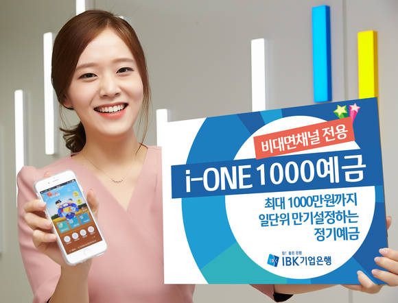 기업은행은 1일 인터넷뱅킹과 모바일뱅킹인 i-ONE뱅크에서 가입할 수 있는 비대면전용 거치식 상품인 ‘i-ONE 1,000예금’을 개인고객에게 판매한다고 밝혔다.