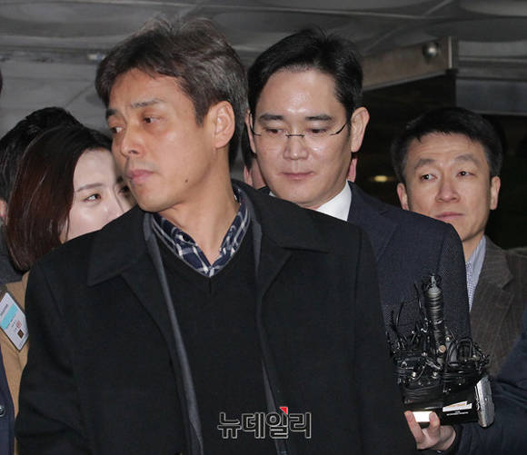 이재용 삼성전자 부회장이 16일 오전 서울중앙지법에서 열린 영장실질심사에 입장하고 있다. 영장심사 직후에는 서울구치소로 이동해 구속여부를 기다릴 예정이다.