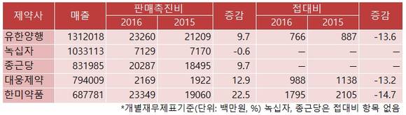 5대 제약사 분석, 김영란법 시행 여파 등 접대비 감소