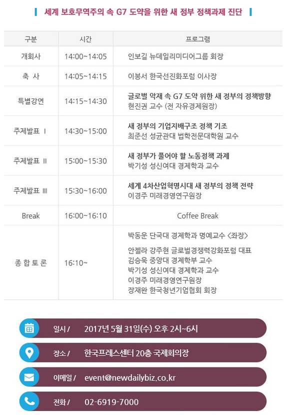 2017년 5월 31일(수) 오후 14:00~18:00한국프레스센터 20층 국제회의장
