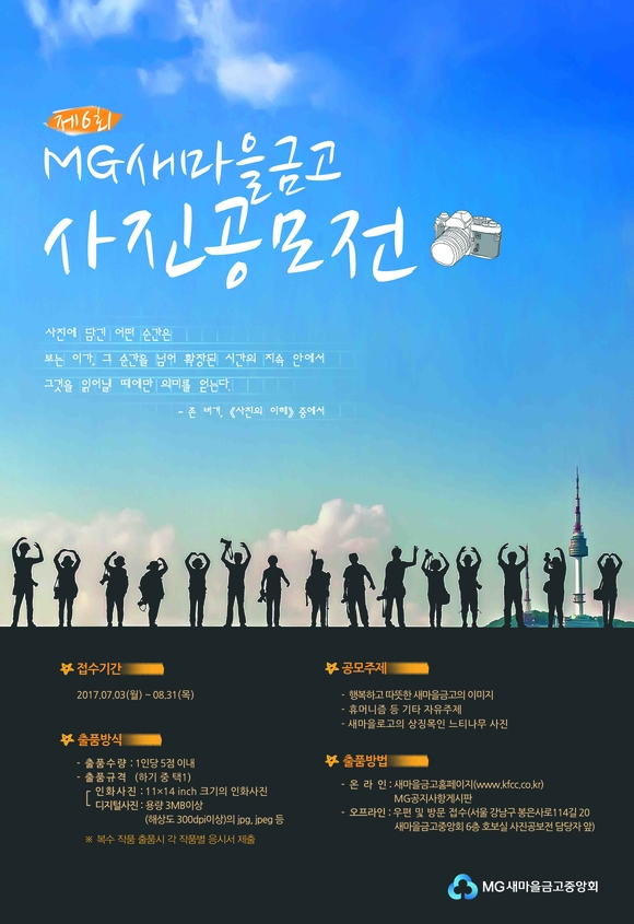 새마을금고중앙회가 내달 31일까지 '제6회 MG새마을금고 사진공모전' 접수를 받는다고 3일 밝혔다.