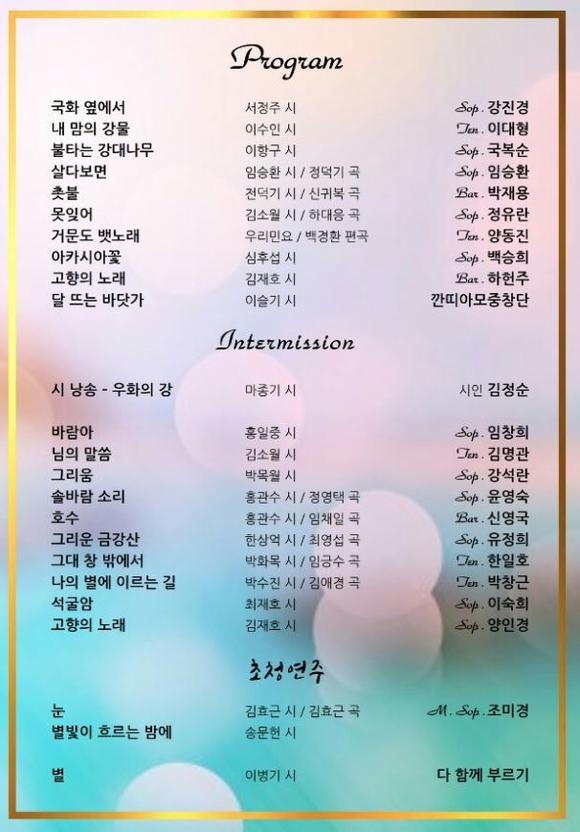 서울역 동자아트홀.. 메조소프라노 조미경, 깐띠아모중창단 등