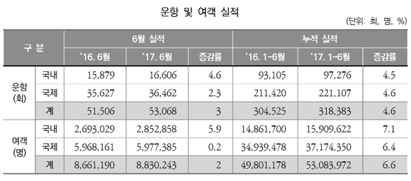한국항공협회에 따르면 상반기 운항 및 여객 실적은 각각 31만8383회, 5308만3972명으로 집계됐다. 이는 전년 동기 대비 각각 4.6%, 6.6% 늘어난 수치다.