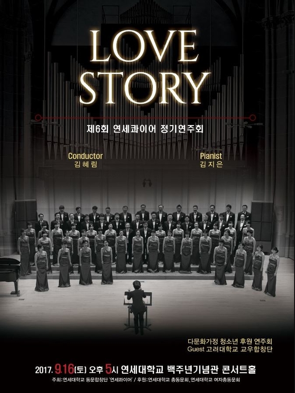 다문화가정 청소년 후원 기금 마련고대 교우합창단 찬조 출연 무대도연세대 동문 합창단인 ‘연세콰이어’의 제6회 정기연주회가 오는 9월 16일(토) 오후 5시 연세대학교 백주년기념관 콘서트홀에서 펼쳐진다.올해 정기연주회의 주제는 ‘Love Story’. 헨델과 모차르트, 베토벤의 사랑을 다룬 대중적인 소품으로 시작해 남녀 간의 애틋하고 달콤한 사랑과 위대한 부모님의 사랑, 신의 사랑 등을 노래한다.클래식과 한국 가곡, 성가, 흑인 영가, 대중가요, 영어 재즈가 어우러진 다채로운 레퍼토리가 예정돼 있다.특히 현대 합창음악계의 신예로 국내 전문 합창단 사이에서도 주목 받고 있는 노르웨이 작곡가 올라 야일로(Ola Gjeilo)의 ‘Evening Prayer’에는 기독교음악(CCM) 색소포니스트로 유명한 심삼종 한양대 강의교수가 협연한다. 콘서트는 김혜림 지휘자, 김태현 부지휘자의 지휘와 김지은 반주로 펼쳐지게 된다.연세콰이어 이화순 단장은 “합창을 통한 사회 발전과 기여를 끊임없이 고민해온 연세콰이어는 이번 연주회의 수익금 일부를 다문화 가정 청소년 후원 기금으로 내놓을 계획”이라고 말했다.이번 연주회에는 특히 고려대 교우합창단이 찬조 출연할 예정이다. 고대 교우합창단은 1955년 창립된 고대 합창부를 모태로 2011년 확대 개편된 고려대 동문 합창단이다. 고대 교우합창단의 10월 정기연주회에는 연세콰이어가 찬조 출연하게 된다.