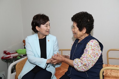 김현미 국토교통부 장관은 12일 65세 이상 어르신들이 거주하는 공공실버주택 현장을 방문해 저소득층 어르신들이 불편함 없이 생활하는지 살펴보고, 주거복지에 있어서 소외되는 계층이 없도록 최선을 다하겠다는 메시지를 전달했다.