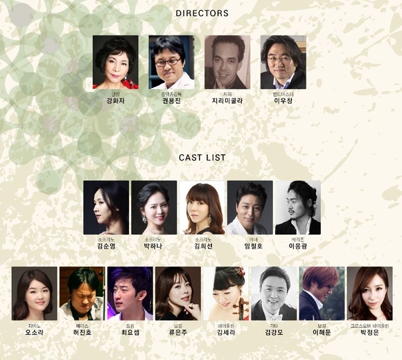 ▷예술감독, 단장- 강화자 ▷음악총감독- 권용진 ▷지휘- 지리미쿨라 ▷밴드마스터 -이우창[출연진]