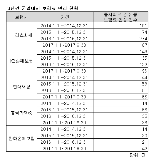 메리츠화재·KB손해보험 가장 많아병역의무에 불합리한 보험료 인상
