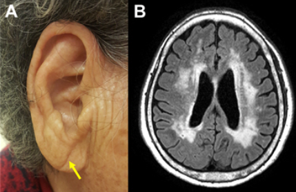 특히 대각선 귓불주름의 존재 여부는 혈관성치매의 원인인 대뇌백질변성의 심한 정도와 알츠하이머치매의 원인인 베타-아밀로이드 양성률과 밀접한 상관관계를 보였다.
