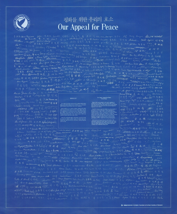 이후 평화로운 올림픽 참여를 당부하는 ‘평화호소문’을 국문과 영문으로 작성하여 국내를 비롯한 전 세계의 지도자들에게 발송했고, 당시 미국의 레이건 대통령, 부시 부통령, 히스 영국 수상 등을 비롯한 전 세계의 지도자들이 서명을 해 보내준 바 있다.