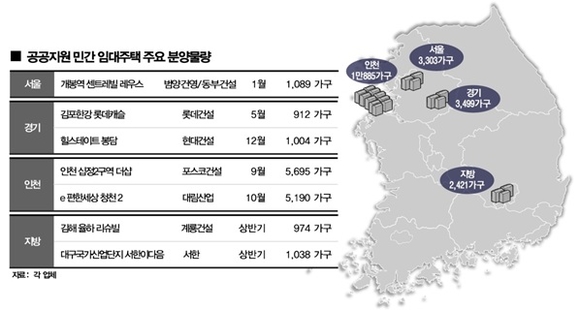 수도권에만 총 1만7687가구가 임차인을 찾을 계획이다. △서울 2개 단지·3303가구 △경기 5개 단지·3499가구 △인천 2개 단지·1만885가구 등이다. 지방에서는 대구·경남 김해 등 일대에서 4개 단지·총 2421가구가 선을 보인다.