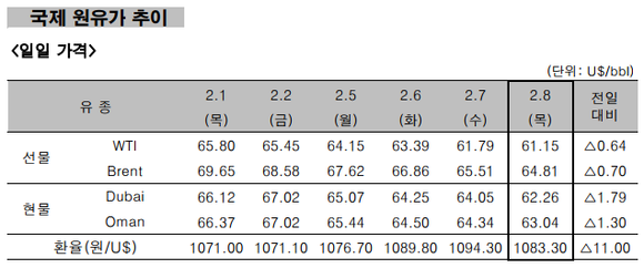 북해 송유관 가동 재개 및 美 주요 증시 하락 영향도Brent유 64.81달러, Dubai유 62.26달러 거래'