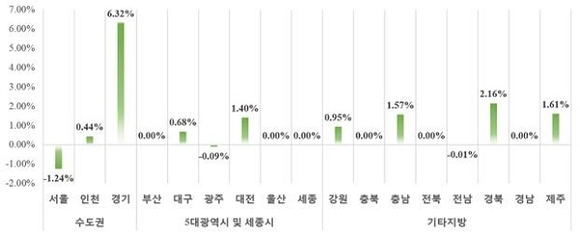 8개지역 '상승'·8개지역 '보합'… 서울 '나홀로' 1.24% 감소
