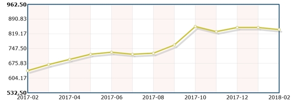 3일 한국수입협회 원자재 가격정보에 따르면, 국제 펄프 가격(활엽수 기준)은 지난 2016년 8월 1톤당 550달러를 기록한 이후 꾸준히 상승하고 있다. 지난해 10월에는 1톤당 855달러까지 치솟았다. 올해 2월 현재는 전년 동월 대비 31.25% 오른 840달러선에서 거래되고 있다.