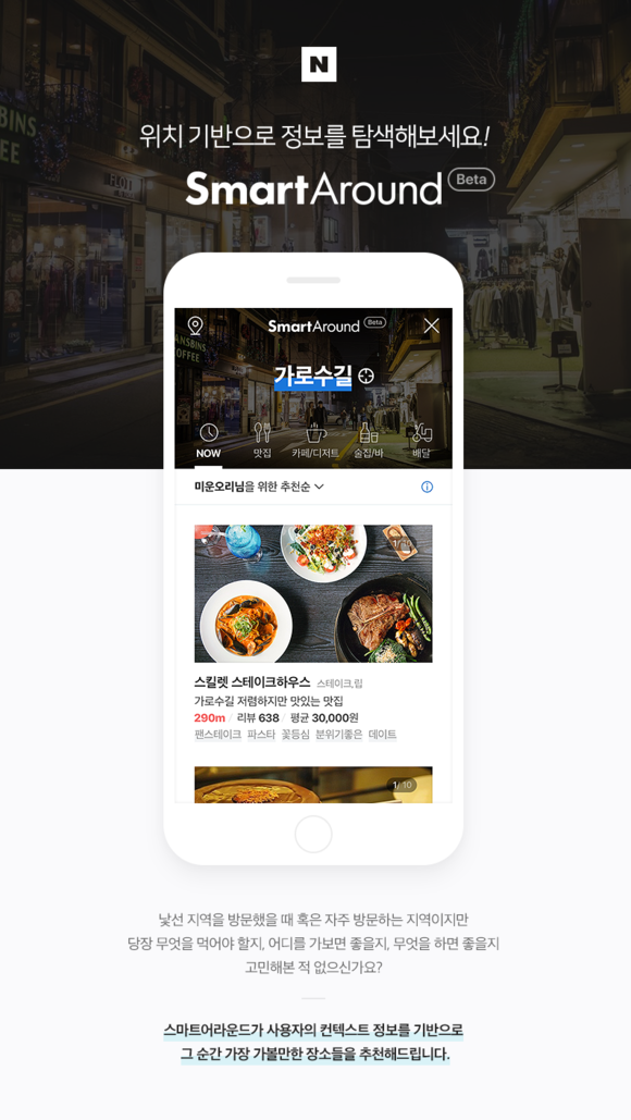 네이버가 사용자의 현재 위치를 기반으로 시간, 연령 등에 따라 최적의 장소를 추천하는 '에어스페이스(AiRSPACE)' 시스템을 네이버 모바일앱에 시범 적용한다고 6일 밝혔다.네이버는 AI(인공지능) 기술 기반으로 검색의 패턴이 다변화되고 있는 흐름에 따라, 지난해 네이버 모바일 검색창 우측에 '스마트렌즈'와 '음성검색'을 적용했다.이어 시간과 공간을 이해해 최적의 장소를 추천하는 에어스페이스를 활용한 '스마트 어라운드'를 추가하며, 모바일 검색창의 진화를 이어가고 있다. 스마트 어라운드는 네앱연구소에서 설정할 수 있으며, 네이버 모바일 검색창 우측의 핀(Pin) 아이콘을 클릭해 사용할 수 있다.이용자는 스마트 어라운드를 통해 클릭 한 번으로 현재 위치, 시간대, 성별, 연령 등에 따라 다양한 맞춤형 장소 정보를 접할 수 있다. 또 스마트 어라운드는 장소 추천뿐만 아니라 이용자가 일상에서 자주 방문하는 곳의 즐길거리와 배달, 예약 등 생활 밀착형 정보도 함께 제공한다.에어스페이스는 이용자의 현 위치를 기반으로 한 컨텍스트와 이용자들이 직접 생성한 UGC 문서를 통해 장소의 특징을 분석, 자동으로 매칭해 추천한다.최치훈 네이버 에어스페이스 리더는 "향후 이용자의 맛집에 대한 선호도와 맛집 간의 거리 등 다양한 요소를 고려해 보다 정교한 장소 정보를 추천할 수 있도록 고도화할 예정"이라며 "에어스페이스를 포함한 AI 기술을 지속적으로 연구하며, 글로벌 검색 시장으로의 도전도 이어갈 것"이라고 밝혔다.