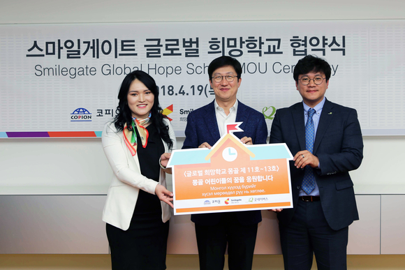 스마일게이트는 지난 19일 몽골에 추가 글로벌 희망학교 설립을 위해 '굿네이버스-코피온'와 사업협력을 위한 업무협약을 맺었다.