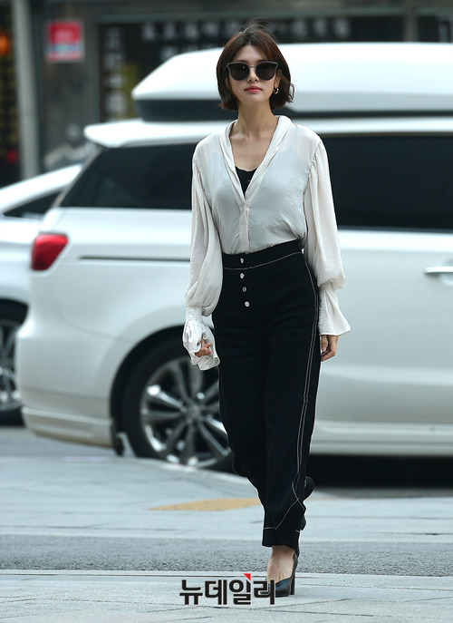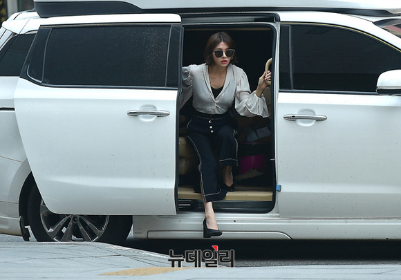 배우 정소민이 20일 오후 서울 신세계백화점 영등포점에서 열린 아이웨어 브랜드 라피스센시블레 팝업스토어 오픈 행사에 참석하기 위해 밴에서 내리고 있다. 라피스센시블레는 스페인어로 '감각적인 어필'이라는 뜻을 가지고, '사람들의 얼굴에 아름답고 개성 있는 선을 그려 나가자는 의미'를 담고 있다.