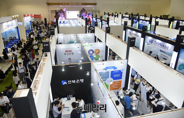 은행연합회, 금융투자협회, 생명보험협회, 손해보험협회, 여신금융협회, 저축은행중앙회 등 6개 금융협회가 29일 오전 서울 동대문디자인플라자(DDP)에서 '금융권 공동 채용박람회'를 개최했다.이번 박람회는 은행과 증권사, 보험사, 카드사 등 총 59개 금융회사가 참여해 채용상담과 채용설명회, 현장면접 등을 실시한다.당일 현장면접을 실시하는 KB국민은행과 우리은행, KEB하나은행 등은 지원자의 학력이나 자격증 등 이력 사항을 보지 않는 블라인드 심사를 실시한다. 우수면접자에게 하반기 공채시 서류전형 합격으로 간주한다. 오는 30일까지 동대문디자인플라자에서 진행된다.
