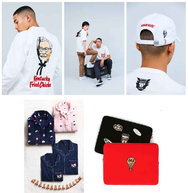 SPC삼립 관계자는 "Z세대를 포함한 영타깃에 알맞는 모바일 캠페인에 어울리는 굿즈를 생각하다 호빵처럼 포근한 제품으로 파자마를 제작했다"며 "컬래버레이션한 제품은 Z세대에서 가장 핫한 쇼핑몰로 꼽히는 무신사에서 한정 판매를 하기로 했다"고 밝혔다. - 미국 KFC는 일본 스트리트 브랜드 '니고(Nigo)'와 닭 튀김을 테마로 한 스트리트 컬렉션을 기획했다.