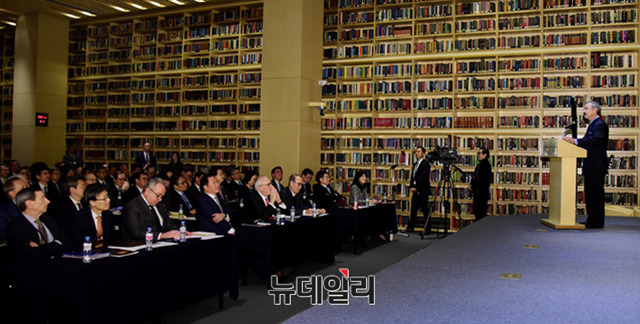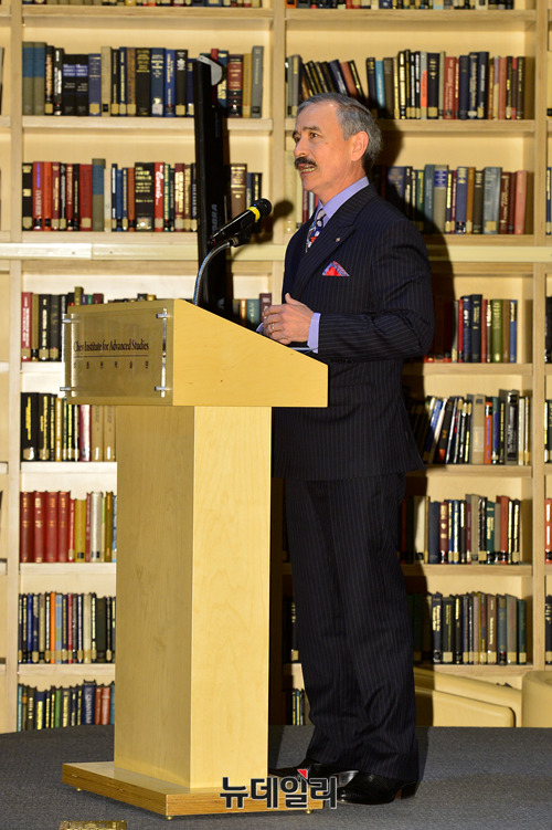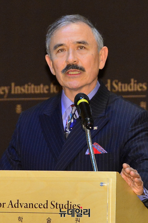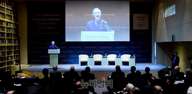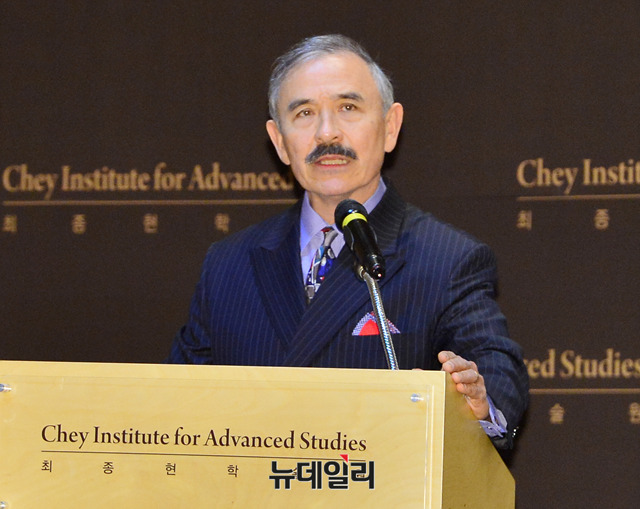 해리 해리스 주한 미국대사가 14일 오전 서울 강남구 한국고등교육재단에서 열린 '최종현 학술원 출범기념 한미중 3국 컨퍼런스'에서 기조연설을 하고 있다. 이 포럼은 최태원 SK그룹 회장이 故최종현 선대 회장의 뜻을 이어 설립한 '최종현학술원'의 출범 기념 컨퍼런스다.