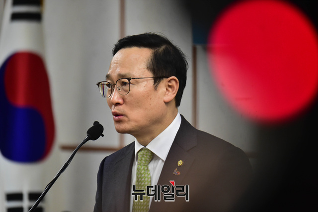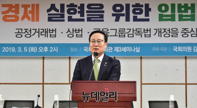 홍영표 더불어민주당 원내대표가 5일 오후 국회 의원회관에서 열린 '공정경제 실현을 위한 입법과제는?' 토론회에서 축사를 하고 있다.