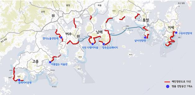 국토부 관계자는 "남해안은 충무공 이순신 장군의 발자취와 한려해상 국립공원 등 역사 유적지가 많고 바다풍경이 아름다운 곳"이라며 "남해안 바다풍경 전망공간(오션뷰 명소화), 해안경관도로 조성 등 사업을 추진할 계획"이라고 말했다.