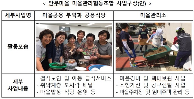 인천 남동구 만부마을은 2017년 우리동네살리기 뉴딜사업으로 선정돼 100억원의 마중물예산(국비 50억, 지방비 50억)을 통해 공영주차장 등 주거환경개선을 위한 생활 기반시설(이하 인프라) 개선과 공동이용시설 조성, 공공임대주택 공급 등을 추진 중이다.