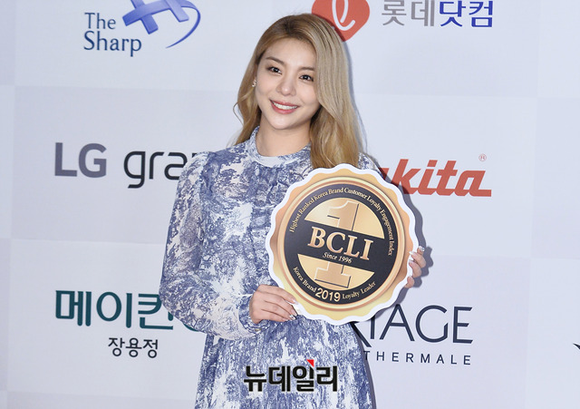 가수 에일리가 17일 오후 서울 여의도 콘래드호텔 파크볼룸에서 열린 '2019 브랜드 고객충성도 대상'에 참석해 포토타임을 갖고 있다. 에일리는 인물·문화 여자솔로아티스트 부문에 선정됐다.