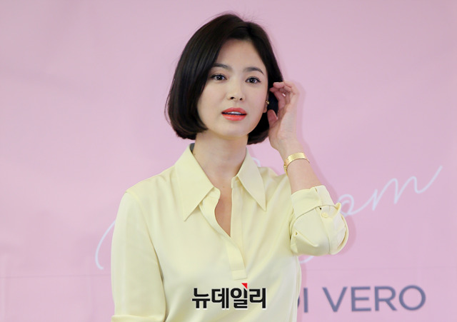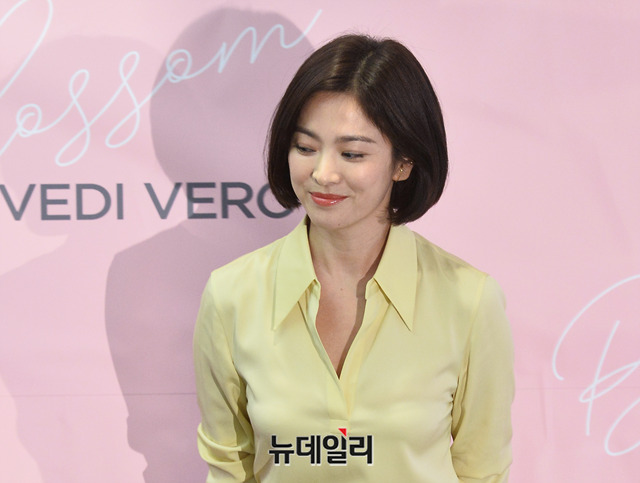 배우 송혜교가 20일 오후 서울 중구 롯데백화점 본점에서 열린 아이웨어 브랜드 '베디베로(VEDI VERO)' 행사에 참석해 포토타임을 갖고 있다.