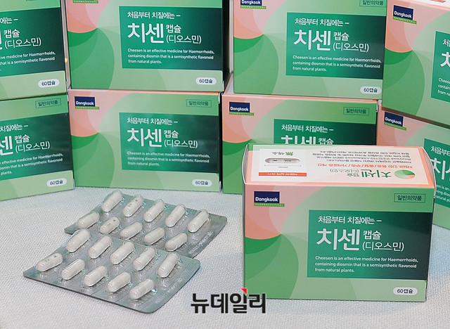 동국제약이 29일 오전 서울 중구 더 플라자호텔에서 열린 '치센과 함께하는 치질 바로 알기 캠페인'에서 의약품을 선보이고 있다.